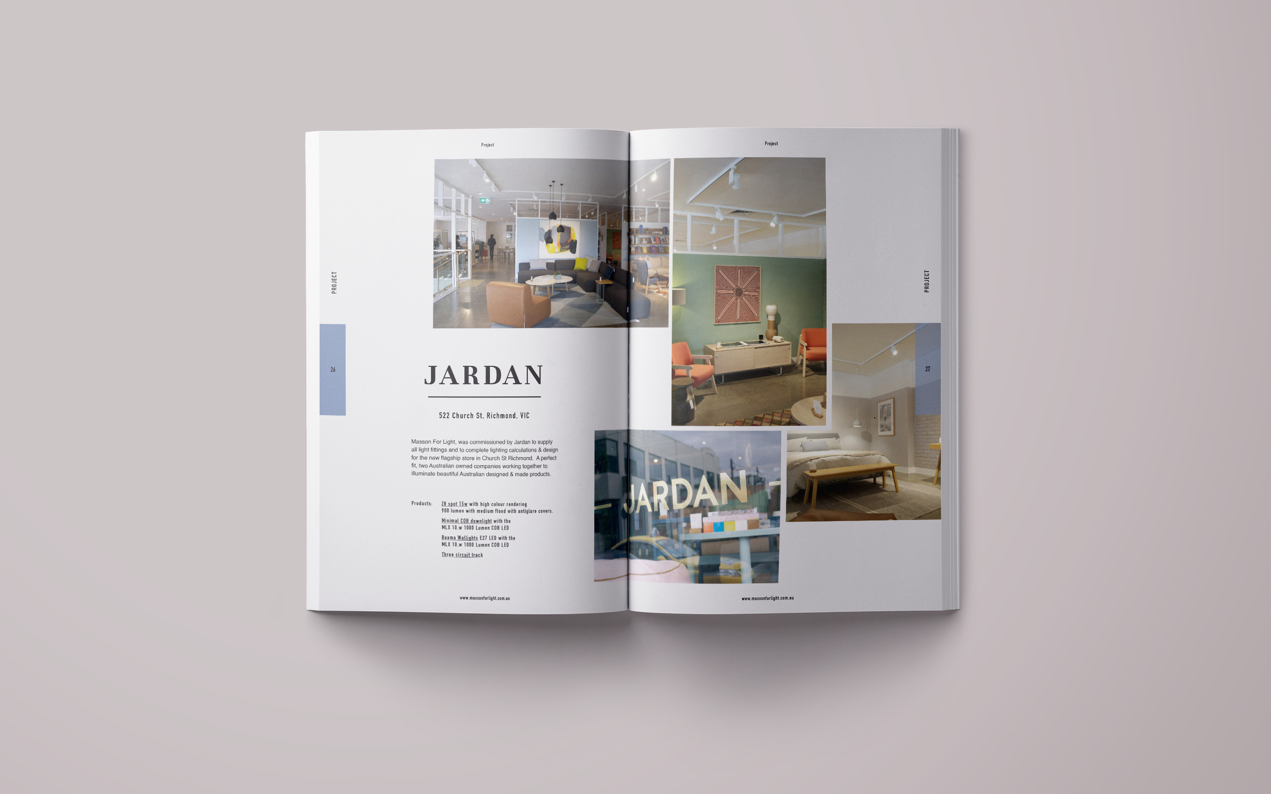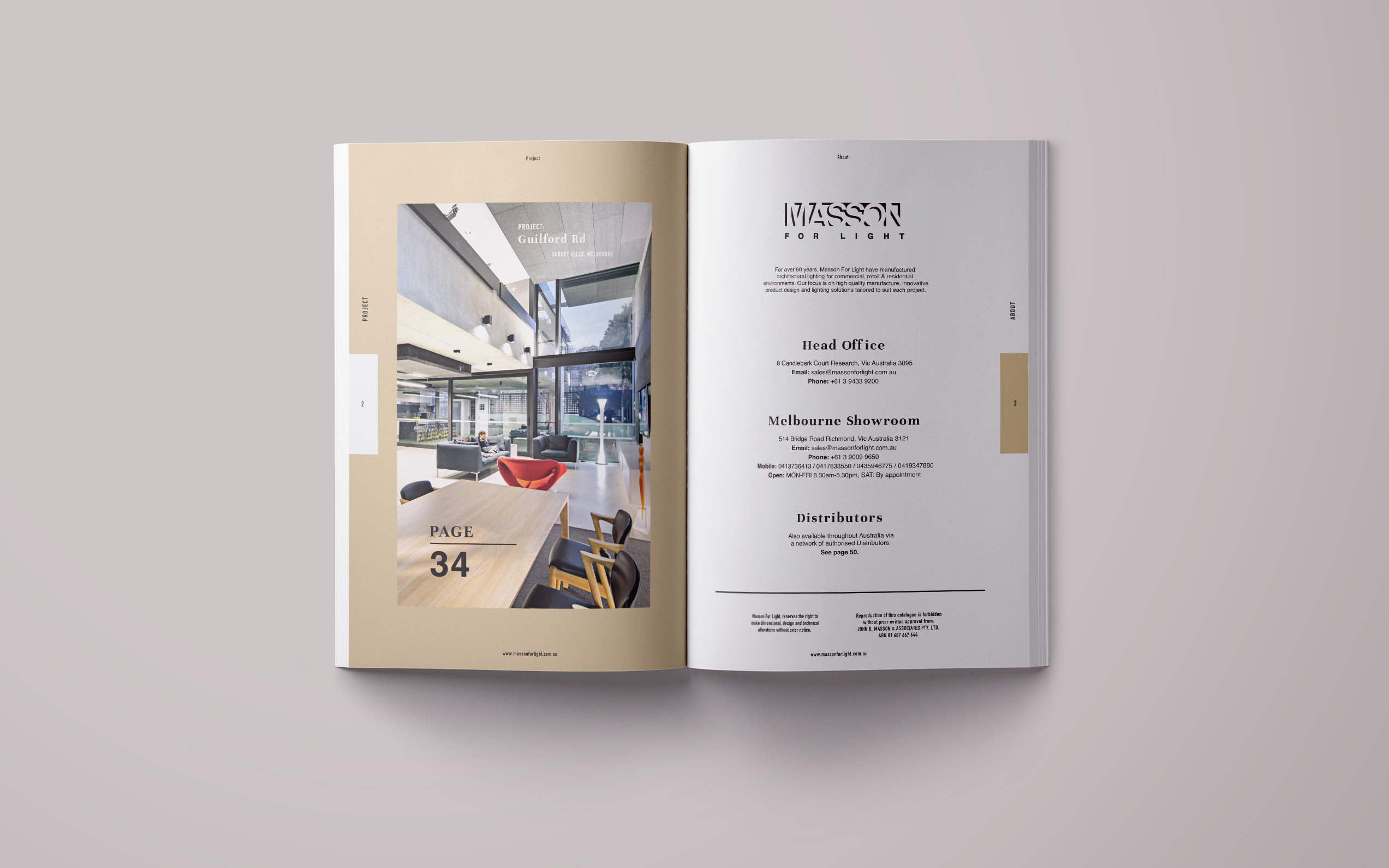 Design a look book that can be handed out in showroom, on client visits and attendance at fairs as a useful resource that gives the clients a good overview of Masson’s products, previous projects and capabilities. The delivery included development of a creative design language complementing their current style guide, product photography, liaising with printers and prepress adjustments.